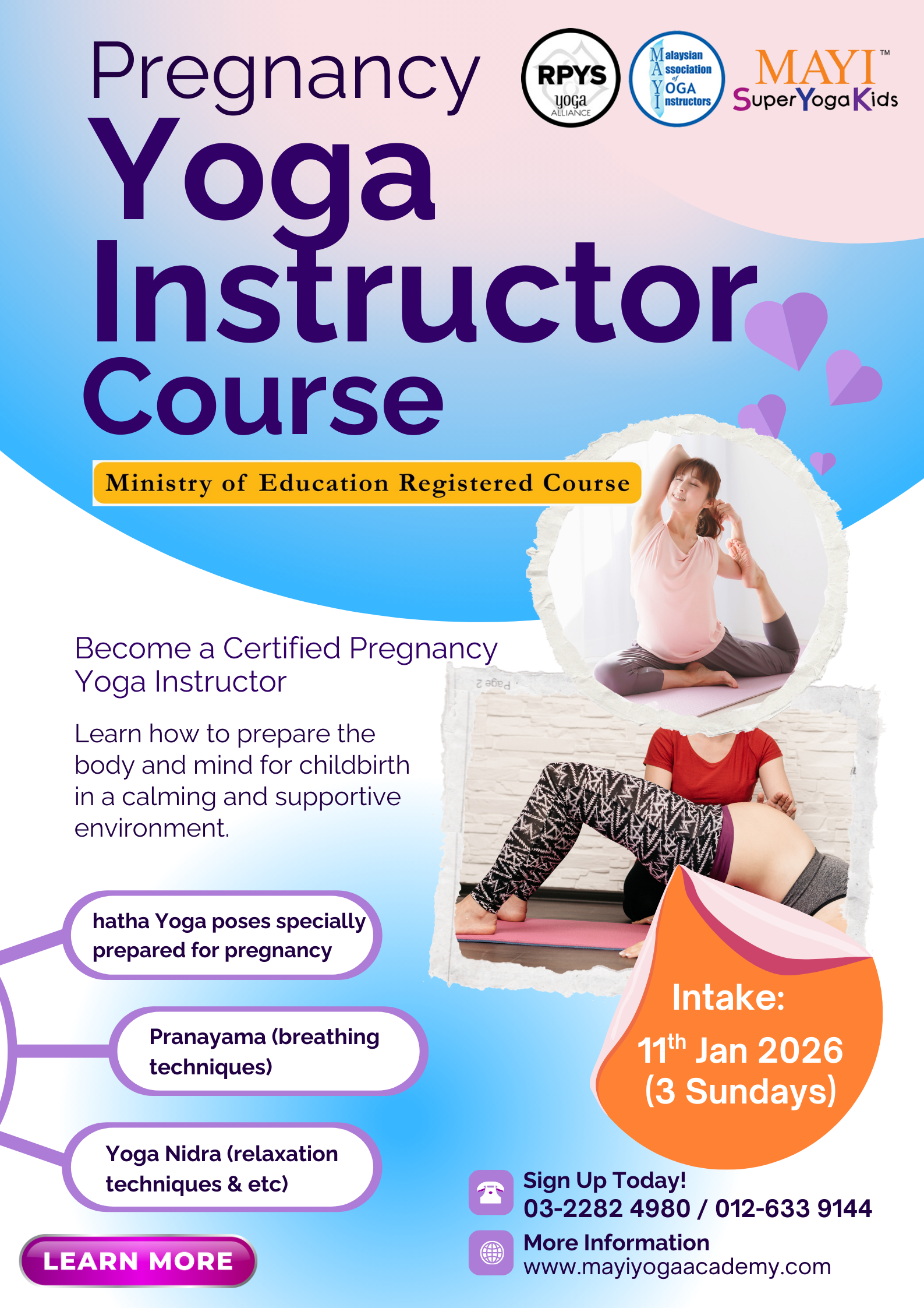 Realising there are more specific needs to Yoga, she continued her learning to equip herself with knowledge in other fields of Yoga for children, pregnancy, pranayama, dhyana, Ayurveda, and yoga therapy. Read more…